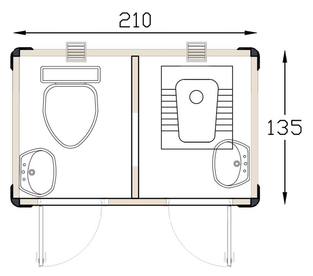 135 315 Panel Cabin 2 Seat Wc Toilet Urinal Plan