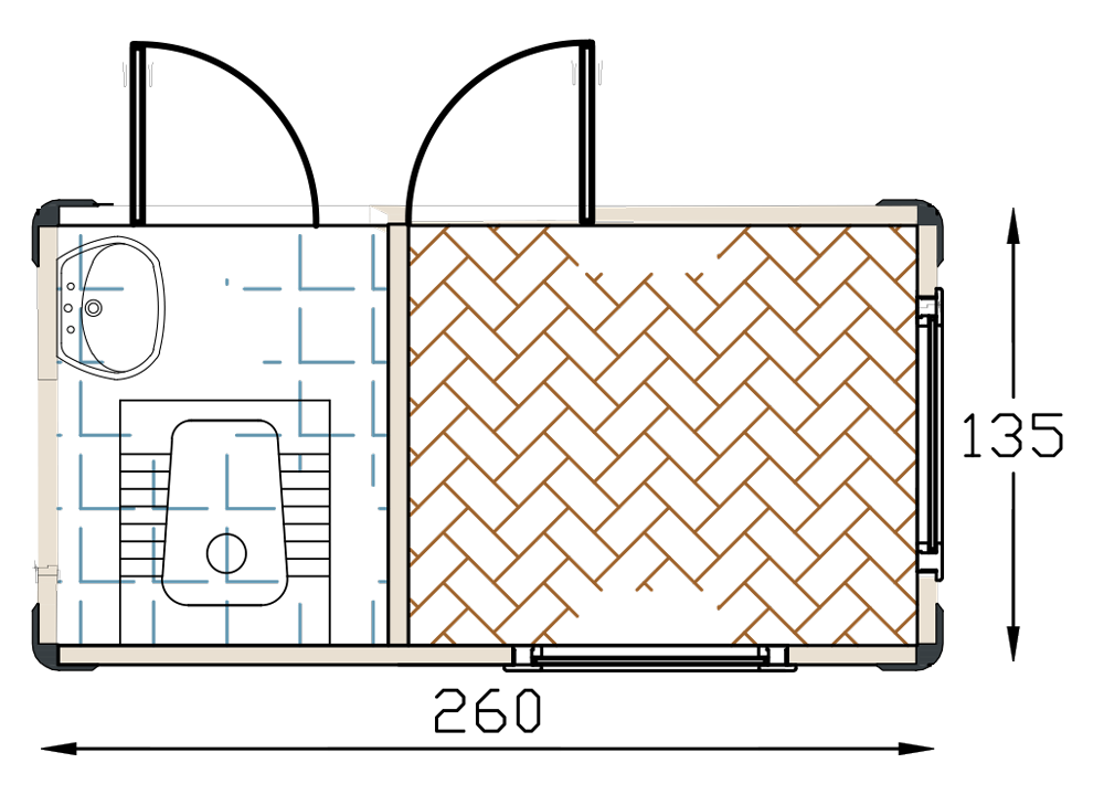 Mobile WC Panel Cabin 135x260 offers a spacious interior and durable design for long-term use. Its panel design enables easy assembly, providing quick solutions in any setting. With a modern design, it fits well in various environments. Suitable for offices, security posts, and temporary work areas, it ensures a comfortable workspace.