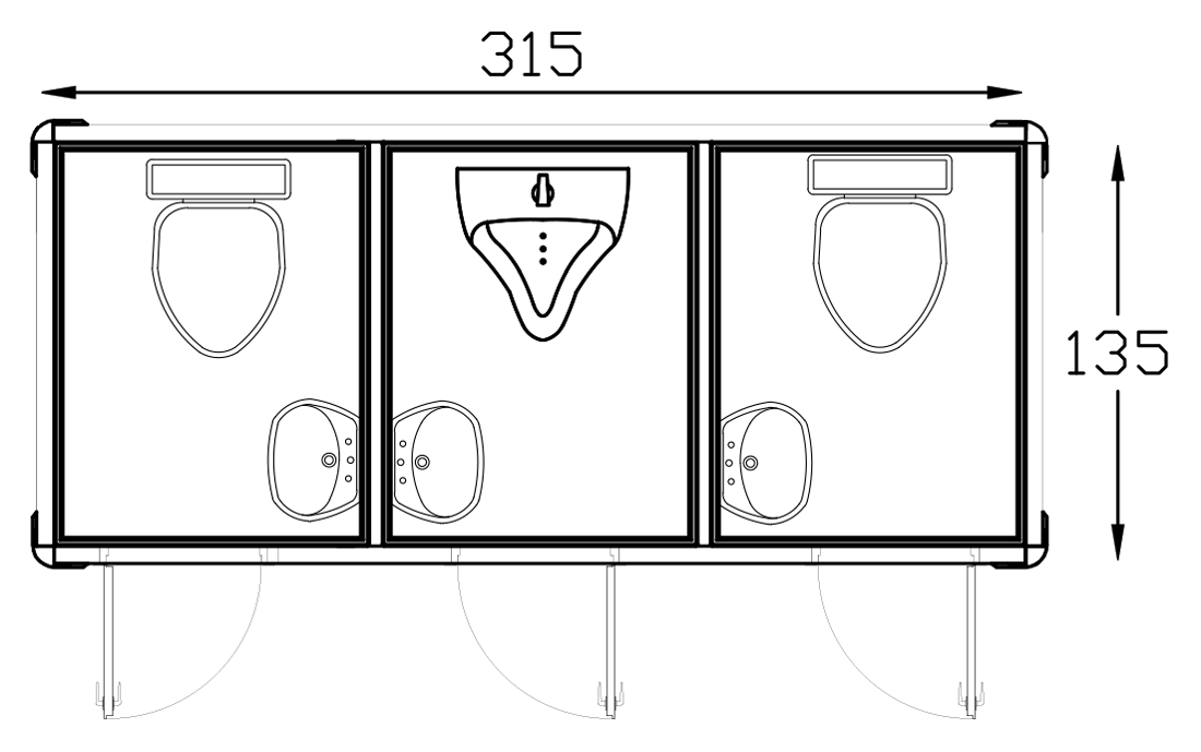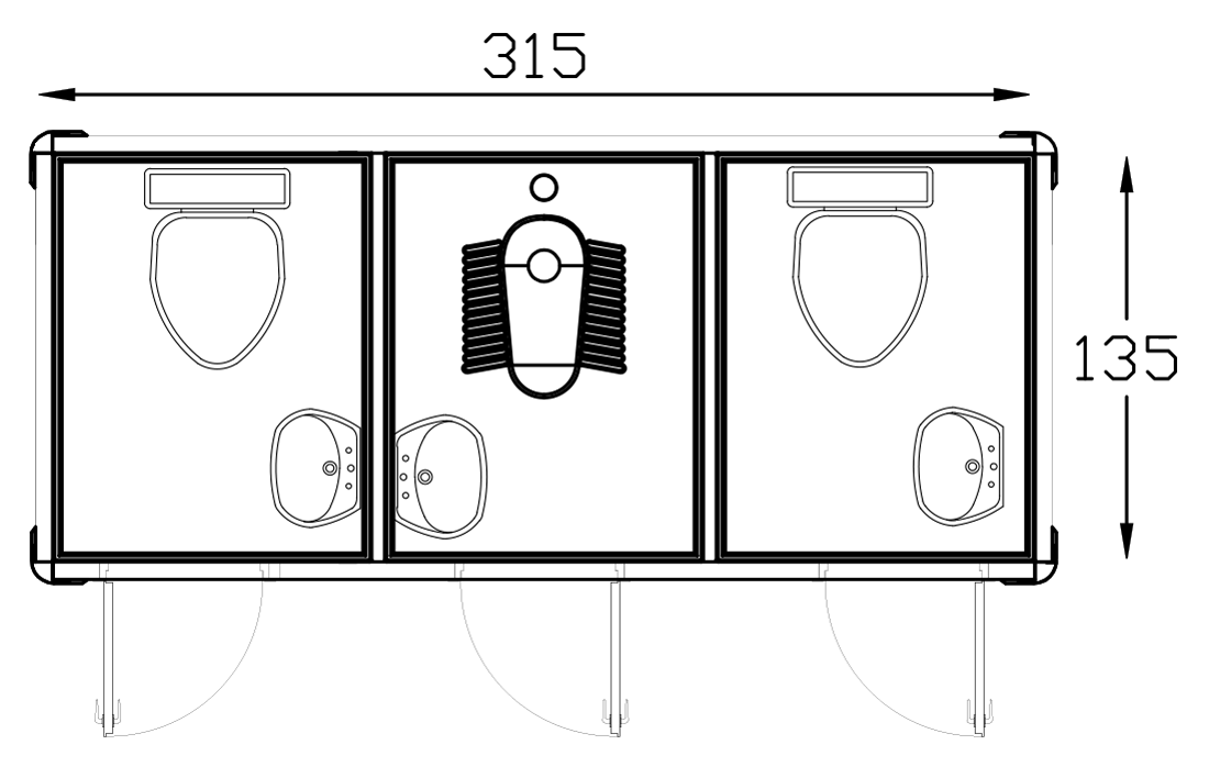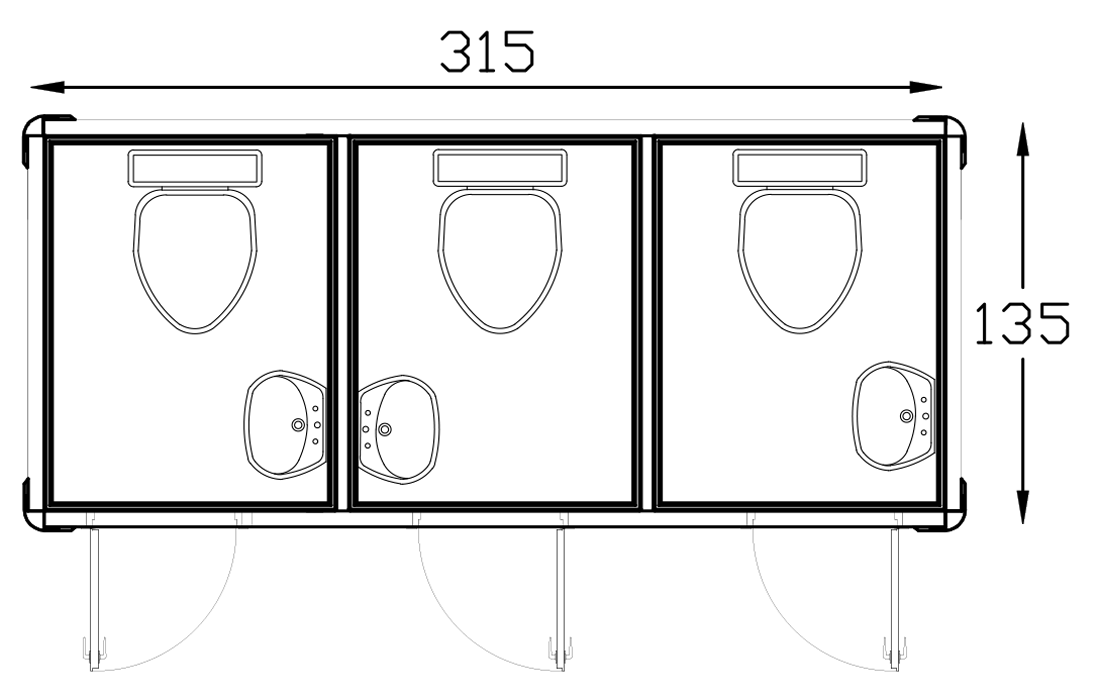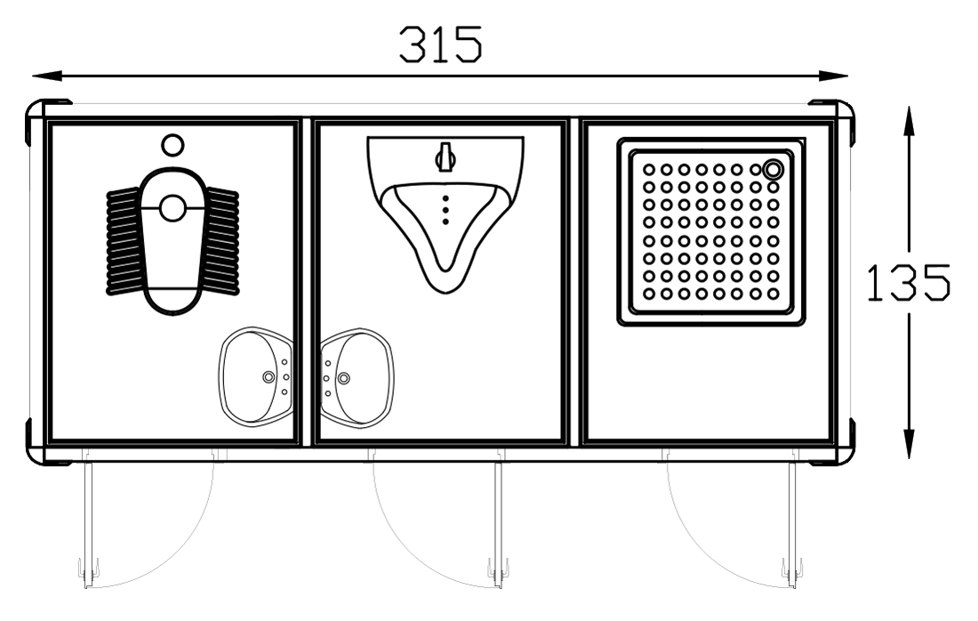 | It is the customer's responsibility to pour concrete 20 cm more than the cabin dimensions, install the cabin on the ground, and make electricity, clean water and waste water connections. |
