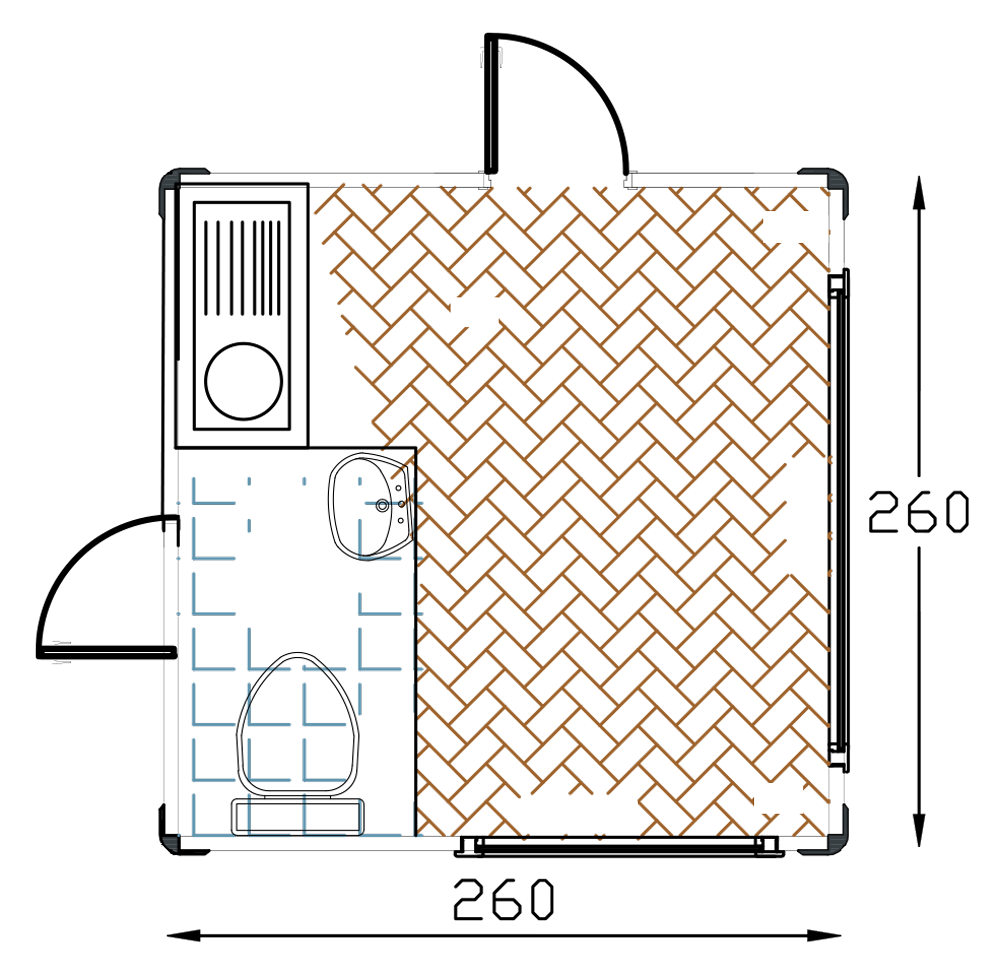 We have different sizes available to match what you need. Standard WC-shower cabins can range from small, around 3 square meters, to larger ones over 10 square meters. Get contact us for detailed information.