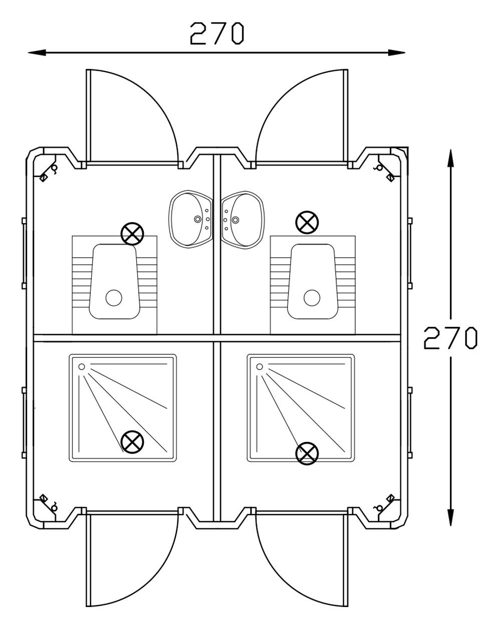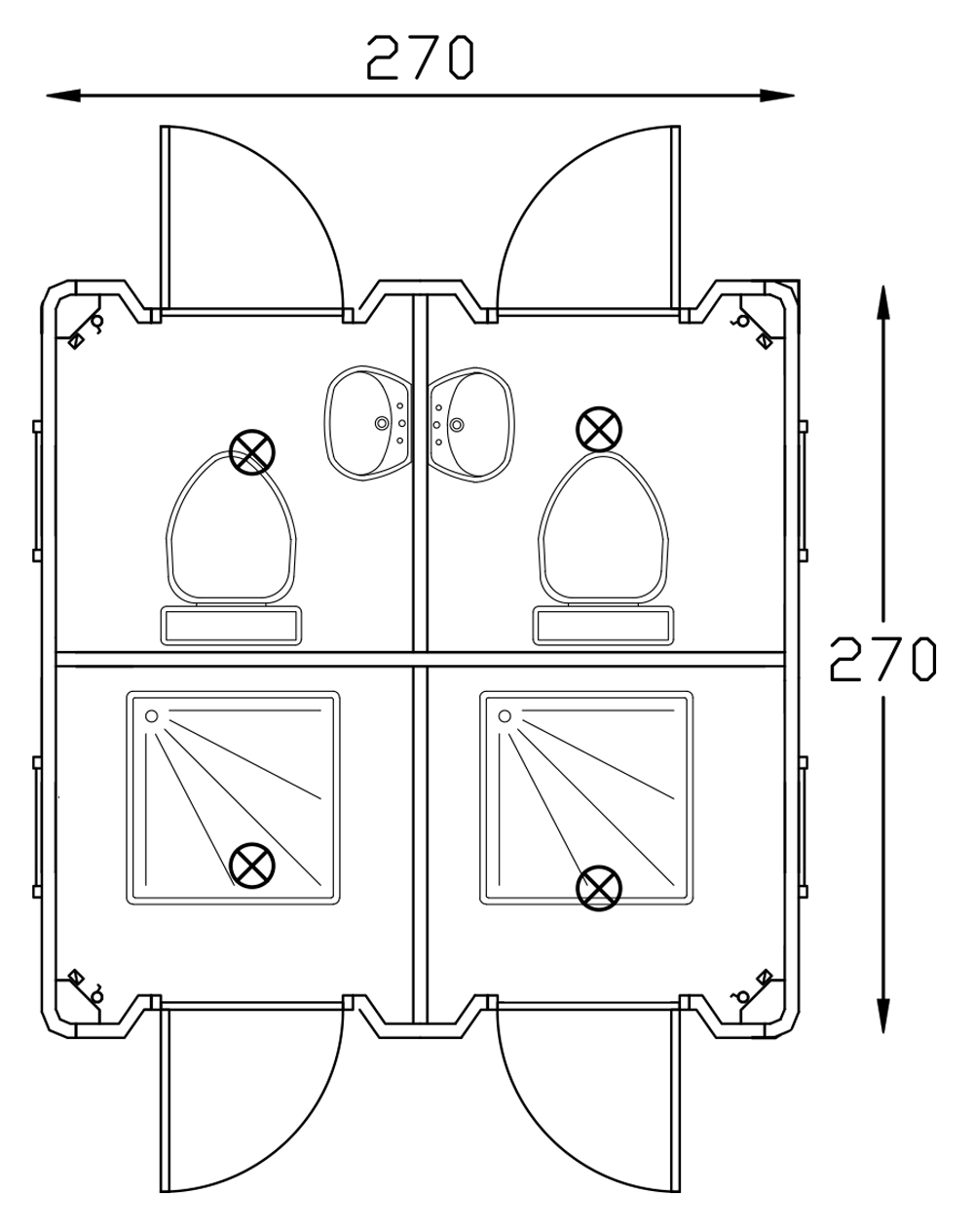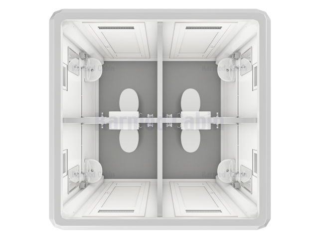Portable Toilet and Shower 270x270 is ideal for meeting staff needs during long-term projects. Available as single or double cabin options, it can be built in custom sizes. Fully prepared with all necessary details, it is set up within 2 working days, providing a complete solution with electrical and water systems as well as accessories.