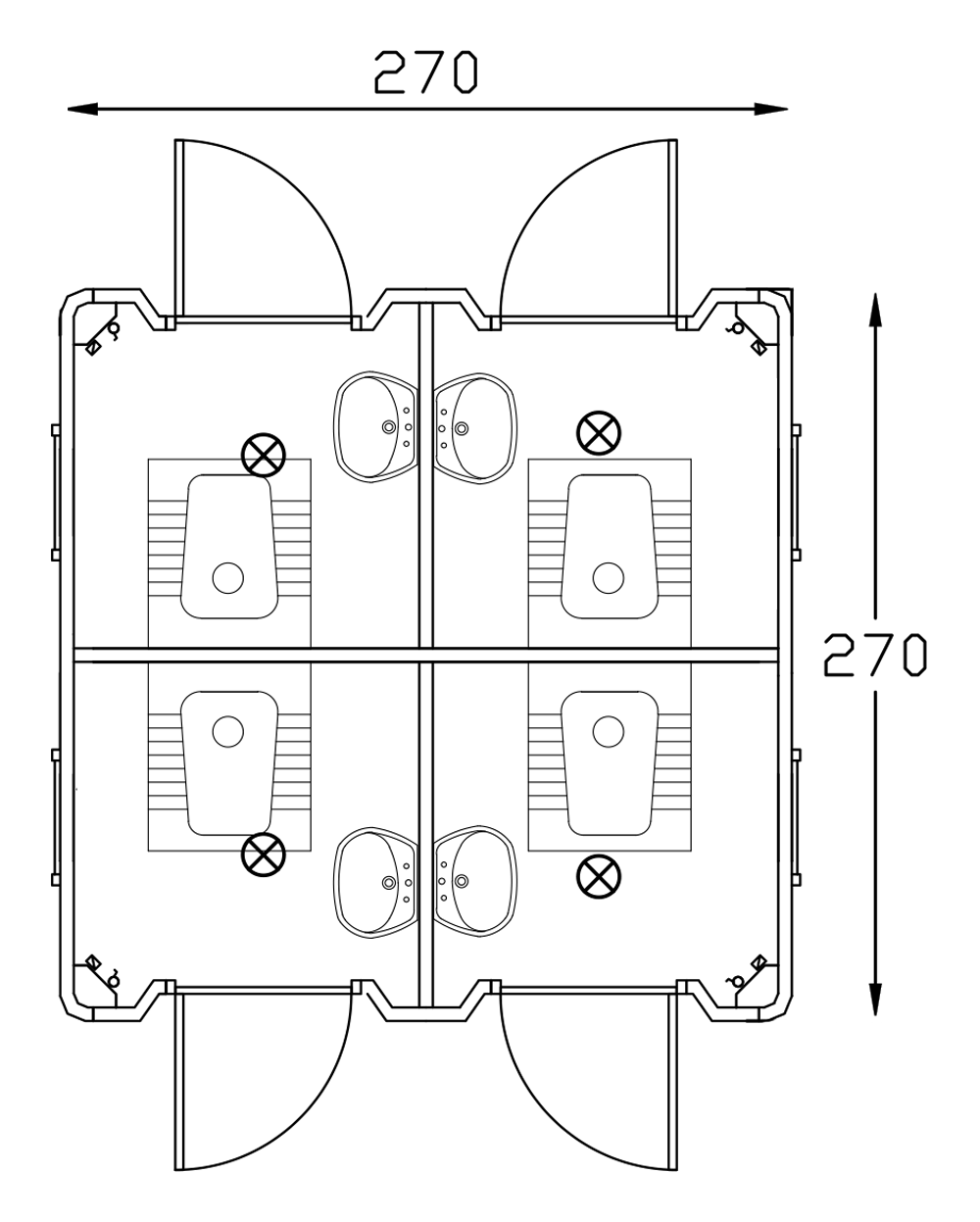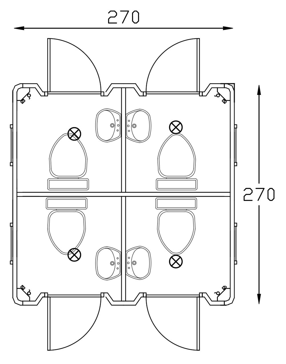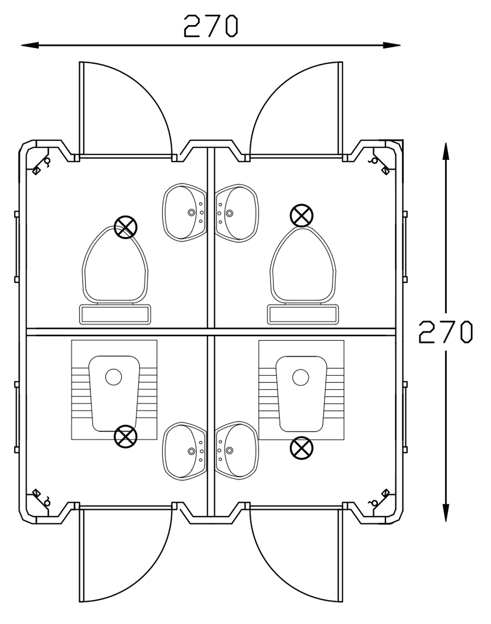 Portable Toilet and Shower 270x270 is ideal for meeting staff needs during long-term projects. Available as single or double cabin options, it can be built in custom sizes. Fully prepared with all necessary details, it is set up within 2 working days, providing a complete solution with electrical and water systems as well as accessories.