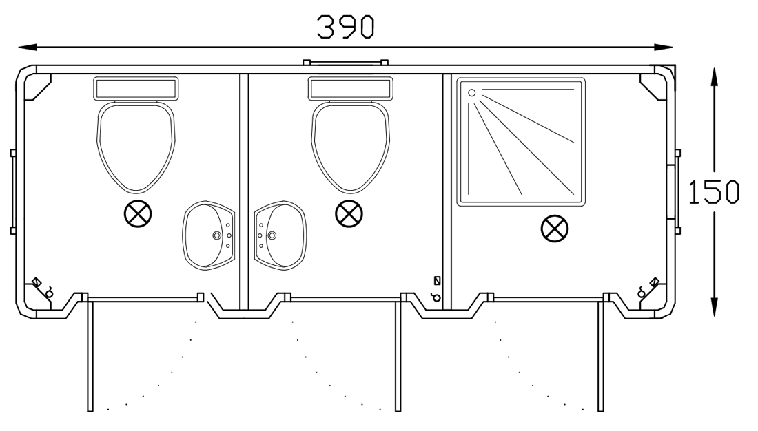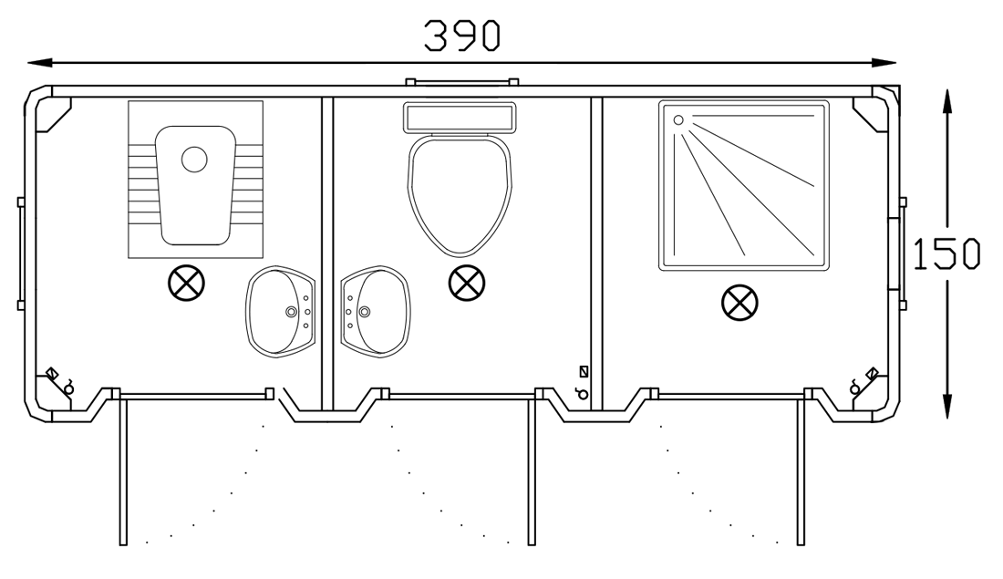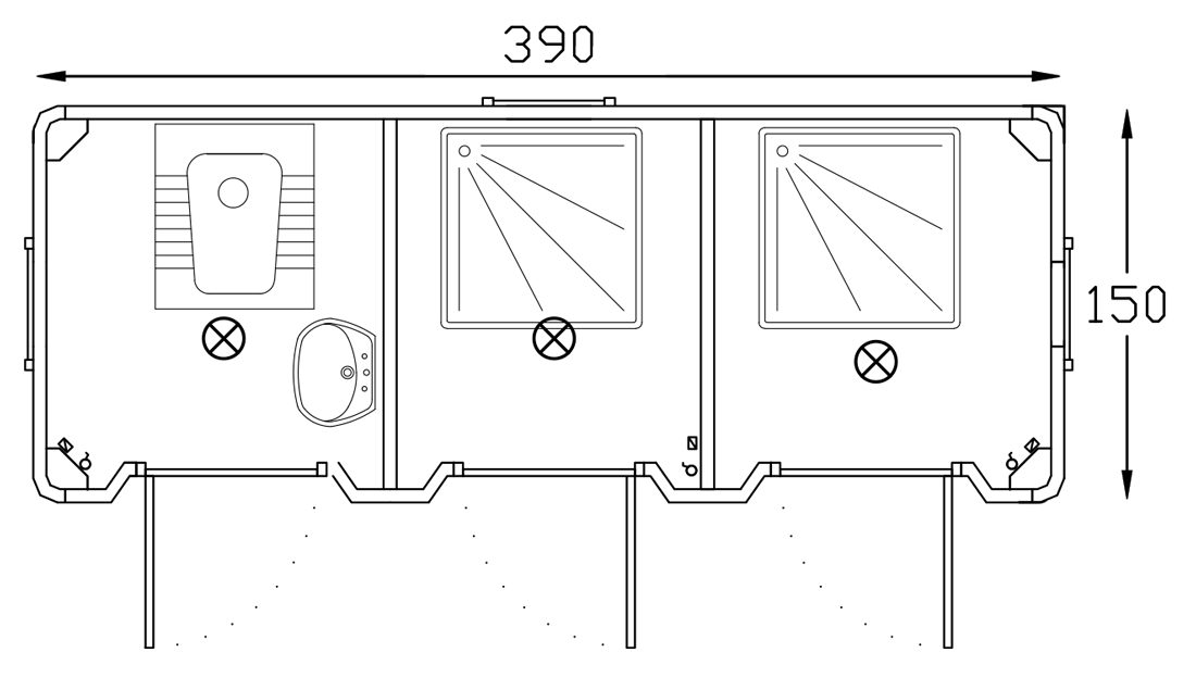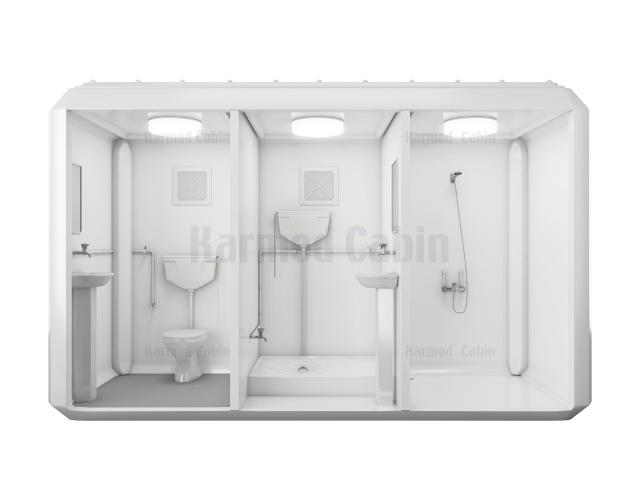 Portable Wc Shower Cabin 150x390 offers a practical solution with ready-to-use units. Used worldwide in various settings, it is ideal for public areas, construction sites, and more. It is durable, cost-effective, and portable. Delivered fully equipped with water and electrical systems, it ensures convenience and reliability.